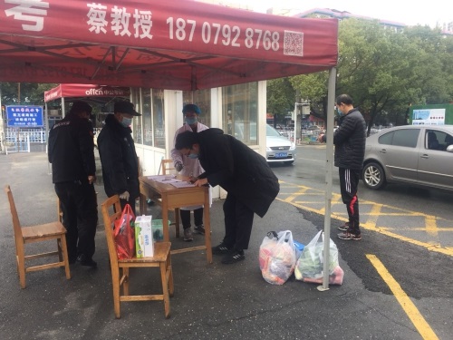 刘晓东校长来到学校南门疫情防控值勤岗,看望坚守在岗位的保卫处和校医院的工作人员,并检查指导门岗防控工作。
