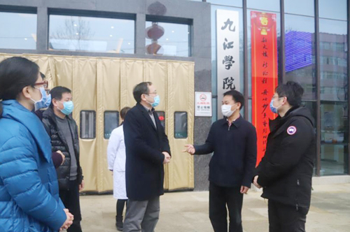 2月11日上午,九江市人大常委会副主任、市总工会主席周美祥一行来到九江学院附属医院,看望慰问奋战在抗击疫情一线的医护人员。市总工会党组成员、副主席万强随同慰问。九江学院附属医院党委副书记、副院长殷小平,副院长贾宗林、欧阳庆雯、李晓华等陪同。