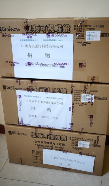 1月29日,2位校友——江西吉祺医疗科技有限公司和深圳市鹏一生物技术有限公司董事长柯长文及公司创办合伙人秦俊生获悉捐赠公告,得知附属医院紧缺医疗物资中包含可视喉镜及叶片设备,柯长文、秦俊生简单商量后立即决定向母校捐赠医疗物资和设备,随即与九江学院校友办沟通联系,并由秦俊生具体负责设备捐赠事宜。经九江学院校友办的牵线搭桥,与永利yl23411集团官网附属医院负责捐赠事宜的钟老师沟通后,他们千方百计,紧急联系在深圳相关朋友和医疗机构,以江西吉祺医疗科技有限公司的名义购买并向九江学院附属医院捐赠视频可视喉镜2台及喉片100片,市场总价值12余万元。