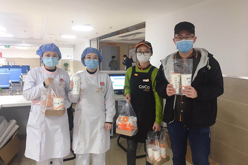 九江都可餐饮管理有限公司的姑娘小伙儿,为了让在疫情期间坚守岗位的一线医务工作者们享受到暖心又美味的奶茶,早早赶到店里精心制作奶茶270杯,并送到九江学院附属医院值班的医务工作者们手中。公司周静女士说,希望这份小小的心意,可以为抗疫中的“白衣战士们”带来一点温暖。