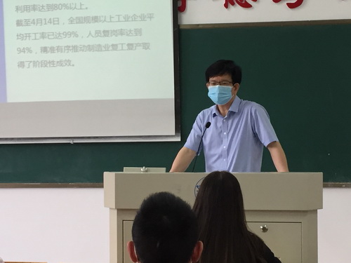 在竞知楼706教室,刘晓东校长以《在战“疫”中成长》为题,从战“疫”的动员、战“疫”的担当、战“疫”的启示三个方面为同学们上了一堂生动的思政课。他从许多生动鲜活的抗疫故事讲起,通过在抗击疫情中涌现出的大量生动的育人题材,通过中西抗“疫”模式对比,深刻诠释了中国精神与中国力量,鼓励大学生要从亲历中增强自信、在实践中贡献力量、从反思中收获成长,在宝贵的“疫情思政”大课中接受教育、挖掘经验、总结教训、弥补短板、获取力量。他指出,聚焦当下,放眼世界,没有任何一个国家能够像中国一样,以壮士断腕的勇气和决心,举全国之力积极抗“疫”,以最小的代价取得最大的胜利。