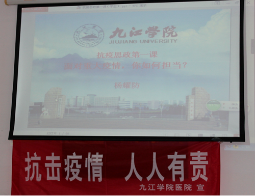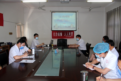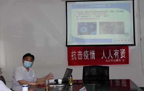 2020年5月20日上午,校医院在四楼会议室组织开展抗疫思政学习活动,学校党委委员、副校长杨耀防教授为校医院全体职工讲授了一堂题为《面对重大疫情,你如何担当》的抗疫思政教育课。校医院全体职工参加了本次培训学习活动。