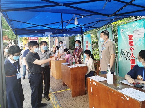 5月19日上午,纪委书记李广欣、副校长陈小林等校领导到浔东校区督查复学返校工作,学生处处长刘平、保卫处处长张晓明陪同参加督查。