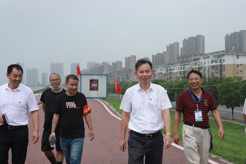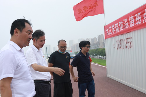 7月9日上午,校党委书记赵伟到赛城湖城西港堤防汛一线,看望慰问坚守在堤坝上的干部职工,现场检查指导防汛工作。