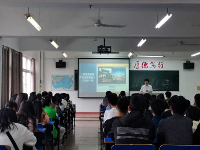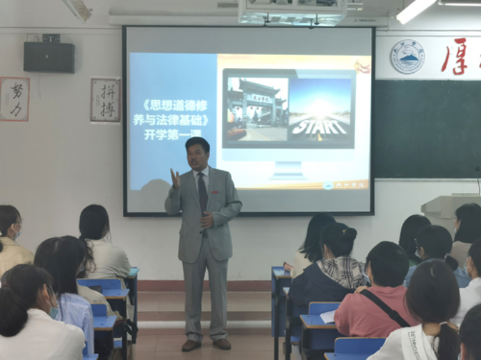 “同学们,今天是你们的大学第一课,同时也是步入大学的第一堂思政课。”在竞知楼313教室理学院A2021班思政课上,赵伟从“新时代、新境界、新理念、新学风”四个主题展开讲授,勉励同学们确立新目标、开启新启程。他指出,经过长期努力,中国特色社会主义进入了新时代,这是我国发展新的历史定位。新时代是我们理解当前所处历史方位的关键词,做什么样的人,怎样做人,怎样的生活才有意义,怎样的人生追求才有价值等,这一系列的人生课题,都需要对新时代有深入的了解和真切的感悟。有新境界,就是青年大学生应该以有理想、有本领、有担当为根本要求,夯实综合素质基础,着力提升思想道德素质和法治素养,展现新的风貌、新的姿态,成为中国特色社会主义事业的合格建设者和可靠接班人,成为走在时代前列的奋进者、开拓者、奉献者; 要树立自主学习、全面学习、创新学习、终身学习的新理念;要崇尚勤奋、严谨、求实、创新的新学风。