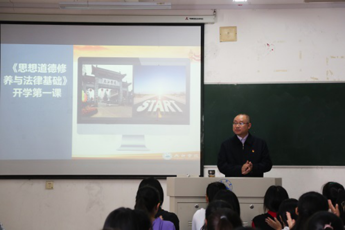 当日,副校长纪岗昌、王万山、陈春生、杨耀防、夏启国、查振华、陈小林也纷纷深入班级,结合永利yl23411集团官网医护人员驰援武汉抗疫的感人故事和个人求学、工作的亲身经历,分别为经管、药生、艺术、教育等学院新生班同学讲授了让人记忆深刻的思政第一课,鼓励同学们秉承“竞知向学,厚德笃行”的校训,不断挑战自己、完善自己,把人生征途中遇到的每一个困难、每一个失败,都转变为我们成长和进步的基石;勉励他们努力成为中国特色社会主义事业的合格建设者和可靠接班人,成为走在时代前列的奋进者、开拓者、奉献者。