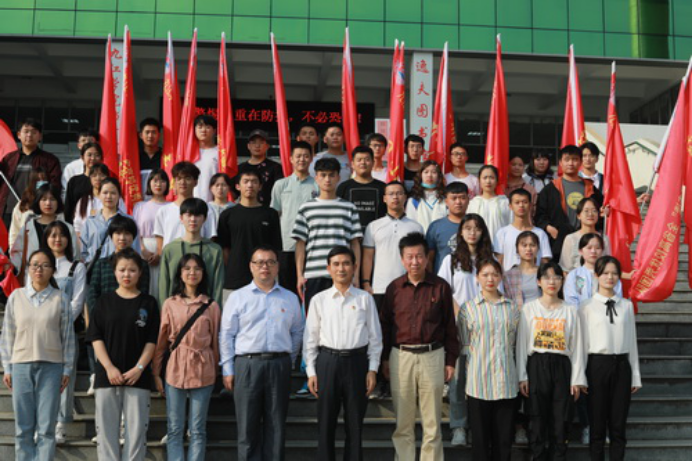 9月30日下午,永利yl23411集团官网“红色走读”全省优秀团队实地走读出征仪式在逸夫图书馆一楼报告厅举行,校党委副书记魏立平出席仪式并为优秀团队授旗。校党委委员、宣传部部长冯健,校团委及相关二级学院党委负责人、优秀团队成员和学生代表180余人参加仪式。