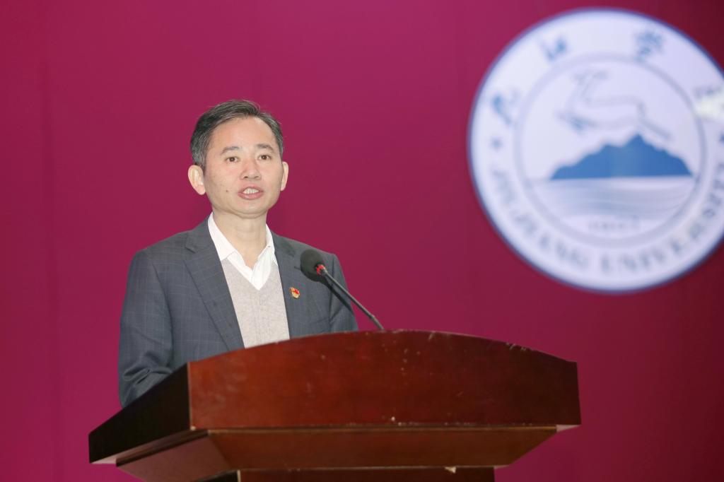 本次报告会由校党委书记赵伟主持。校长刘晓东,校党委副书记魏立平,副校长纪岗昌、王万山、陈春生、查振华、陈小林出席,校党委委员王殿元、冯健、刘遵海,学校副处以上领导干部,各民主党派负责人、知联会、留联会负责人、思政课教师、各二级学院辅导员及部分学生代表聆听了报告。
