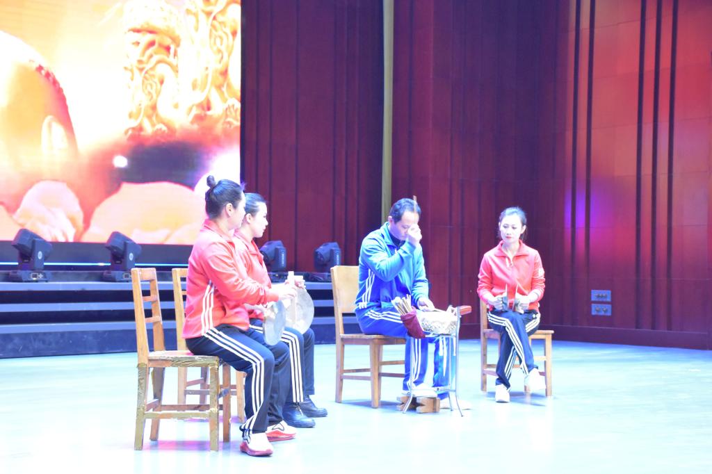 结业仪式结束后,学员还进行了精彩的汇报演出。演出内容有锣鼓演奏,《百花记•百花赠剑》选场、《贵妃醉酒》《金锁记·斩娥》《玉籍记·夜等》等青阳腔传统剧目,青阳腔曲牌《红纳袄》男声表演唱。节目异彩纷呈,让观众领略到了传统青阳腔戏曲艺术的蓬勃生命力,赢得了观众的一致好评,全场掌声不断。