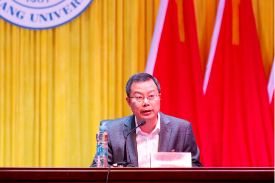 校学生会执行主席任尧坤同学代表第三届学生委员会作了题为《聚焦主责主业,锐意改革进取,在建设特色鲜明区域领先的综合性应用型大学进程中谱写青春之歌》的工作报告。大会选举产生了新一届学生委员会委员、主席团成员,通过了《九江学院学生会章程(2020年修正)》《致全校青年同学的倡议书》。