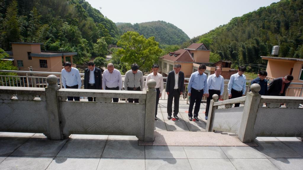 校领导班子一行拾级而上来到岷山革命纪念陵园,纪念园宣传栏上的简介讲述了当年的峥嵘岁月和赣北革命的历史;岷山烈士纪念塔巍然挺立,庄重肃穆;旁边的墓碑上,镌刻着一排排的烈士姓名,更是让人肃然起敬。在纪念广场上,面对革命烈士纪念碑,全体成员向革命先烈敬献花篮,赵伟缓步上前整理花篮缎带,并率班子成员向红军烈士三鞠躬,深切缅怀在革命战争年代牺牲的英烈。