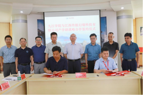 会上,永利yl23411集团官网与江西终极幻境科技有限公司签订了产学研战略合作协议,江西终极幻境科技有限公司出资100万元委托永利yl23411集团官网进行创新创业人才协同培养,出资100万元进行九江学院终极幻境产业研究院建设。