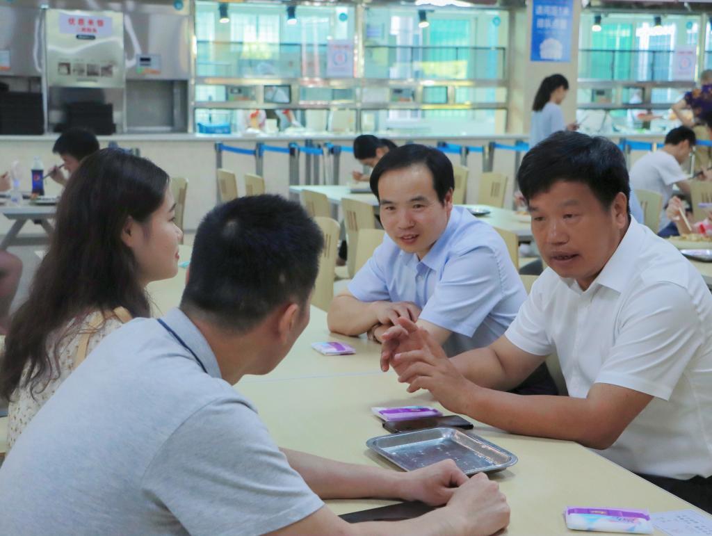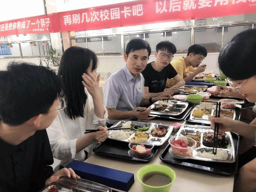 毕业典礼结束后,学校在主校区一食堂和三食堂、浔东校区食堂准备了定制午餐和毕业礼物,为2021届全体毕业生送别,让毕业学子再一次感受九院的味道,校党委书记赵伟、校长陈小林等校院领导来到学生三食堂,与同学们共进午餐,一起回忆大学时光,一起畅想美好未来。
