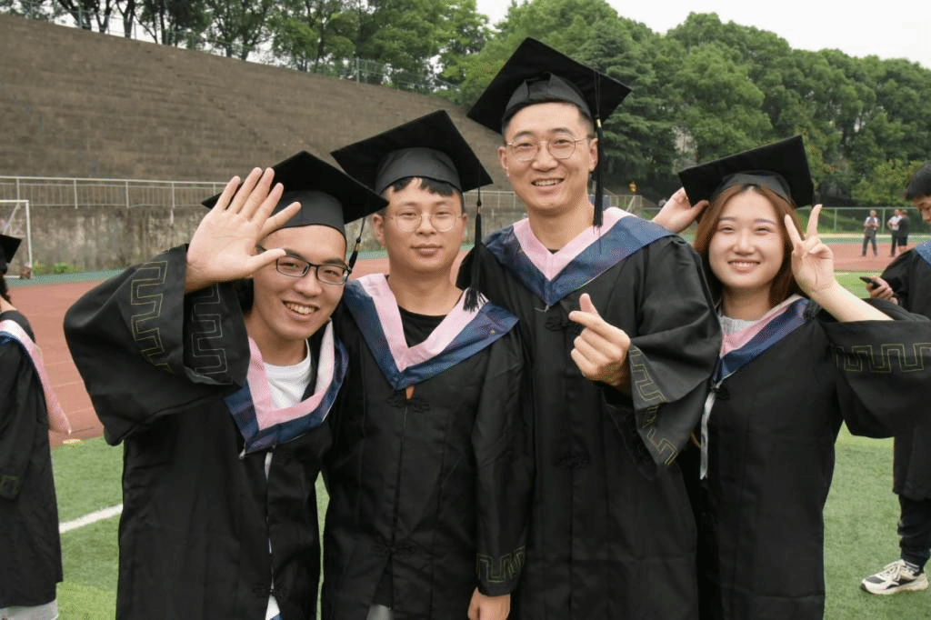 毕业典礼在2021届全体毕业生们抛帽欢呼中结束,赵伟、陈小林等校领导、校学位评定委员会委员来到同学们中间,与他们合影、握手、话别。