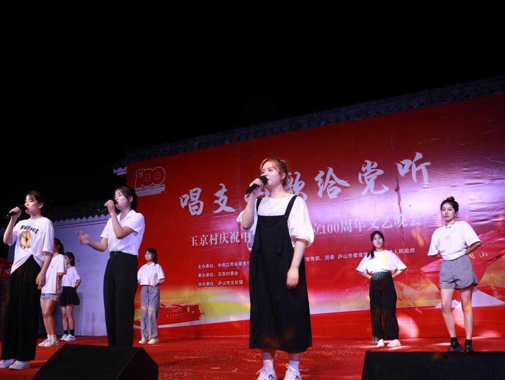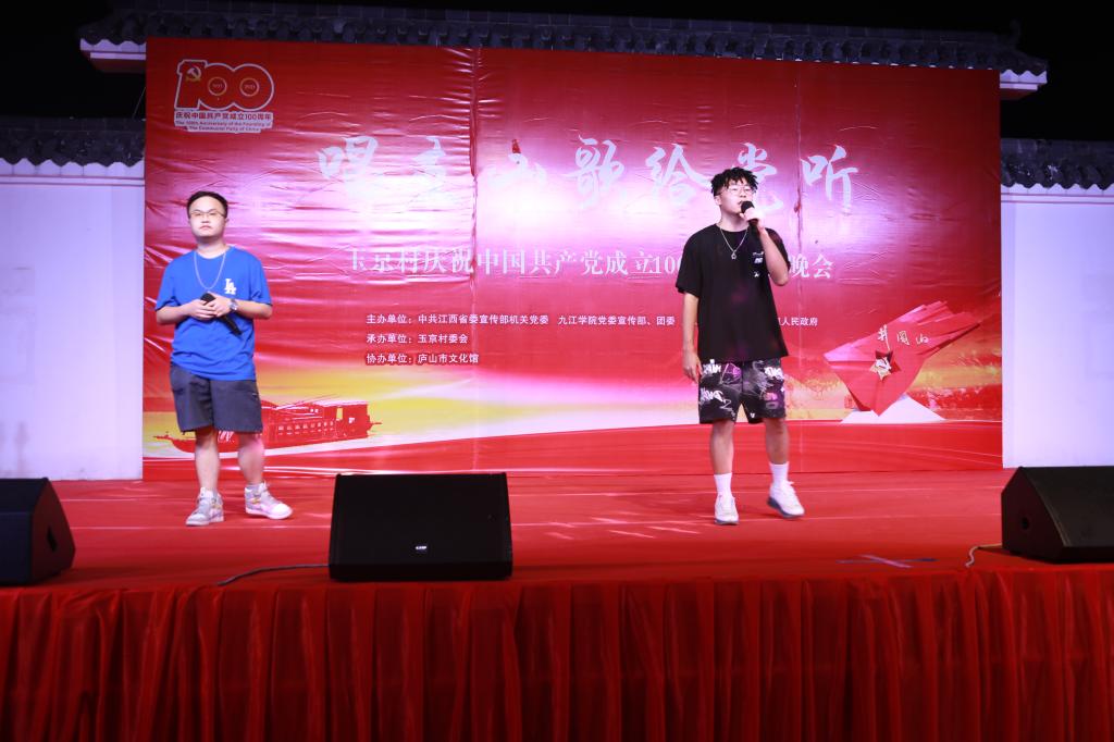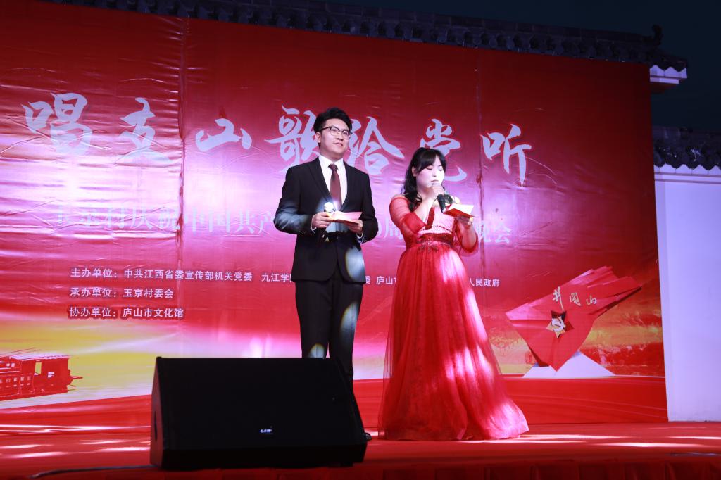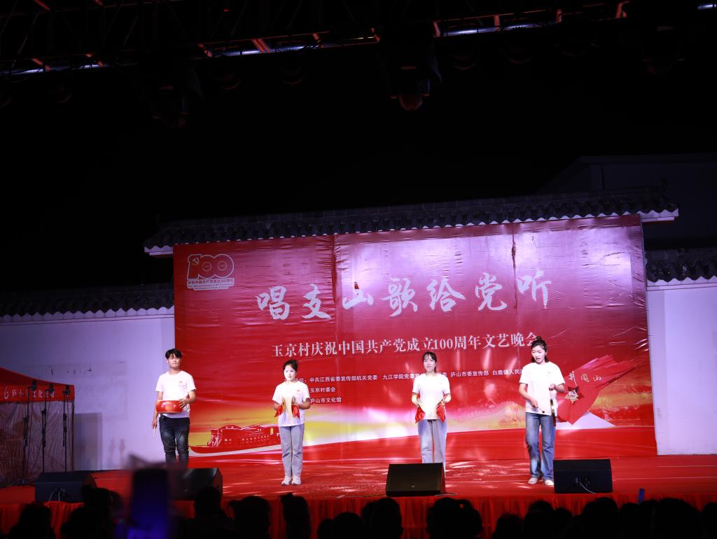 6月29日夜晚,庐山市玉京村新时代文明实践广场灯火璀璨,气氛喜庆热烈,由中共江西省委宣传部机关党委、永利yl23411集团官网党委宣传部、校团委、庐山市委宣传部、白鹿人民政府共同主办,玉京村委会承办,庐山市文化馆协办的“唱支山歌给党听”庆祝中国共产党成立100周年文艺晚会正在举行中。省委宣传部二级巡视员、机关党委专职副书记罗远东,庐山管理局党委书记、庐山市委书记李甫勇,永利yl23411集团官网党委副书记魏立平等与永利yl23411集团官网师生代表以及玉京村村民一同观看了本场晚会。