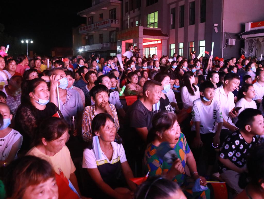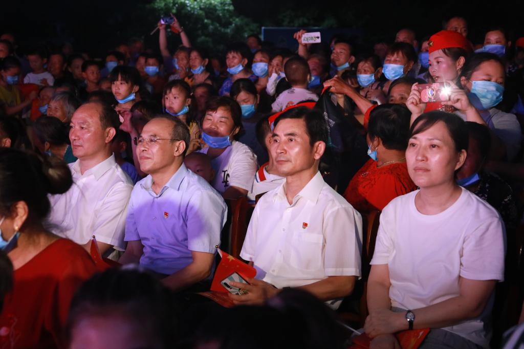 19时30分,晚会在广场舞《没有共产党就没有新中国》中拉开帷幕。整台文艺晚会共有17个节目,歌曲演唱、诗歌朗诵、器乐演奏、戏曲、舞蹈、魔术等丰富多样的艺术形式穿插表演,表达了对党的热爱与感恩之情。晚会吸引了众多村民前来观看,歌舞声、喝彩声、鼓掌声和村民们的欢笑声相互交融、此起彼伏,大家还纷纷拿起手机记录这美好的时刻。