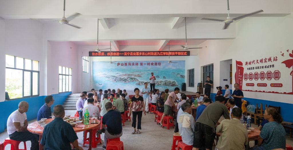 学校先后与武宁县签订战略合作协议,成立了乡村振兴战略研究院,结合当地特色将科研平台放在扶贫点,建立了党员教育、大学生新时代文明实践志愿服务和马克思主义教师理论教学实践等基地,组织了千名党员到扶贫点开展“四史”教育、文明实践、“红色走读”等活动,选派了近100名博士团到村完成了村庄、乡村旅游和产业等发展规划,帮助扶贫点大力开展红色文化和移民文化挖掘工作,凝练形成了东山村独有的移民文化精神,一系列组合拳让学校提高服务地方高质量发展能力在脱贫攻坚战场得到了一次全方位、立体式展示。