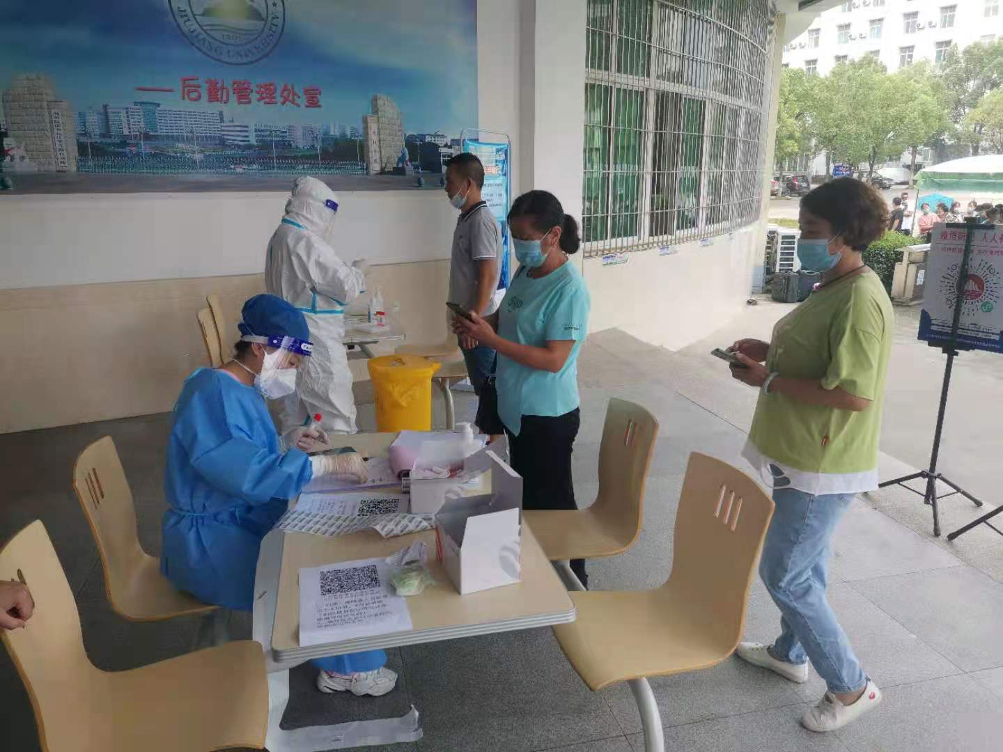 为积极响应江西省疫情防控工作部署安排,落实市疫情防控指挥部《关于强化新冠病毒核酸检测筛查工作的通知》关于重点行业人群“应检尽检”工作要求,做好校园的疫情防控工作,8月26日,后勤管理处全体员工在第三食堂门口,进行新冠病毒核酸采样、检测。据悉,共检测801人,检测结果均为阴性。