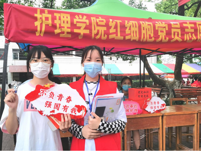 来自浙江杭州的金乐怡同学在办理完入学手续后,来到护理学院“红细胞”党员志愿服务站完成她的最后一项报到任务——参加学院组织的党史知识有奖竞答。小金同学顺利答对她抽到的问题后自豪地告诉记者:“学长告诉我,学院秉承着‘未入学先上课’的理念,传承红色基因,创新发展护理。我觉得这个活动内容十分新颖,感觉很特别,让我一下子对马上开启的大学生活充满了期待。”