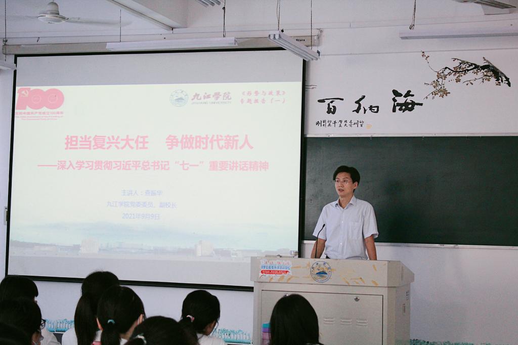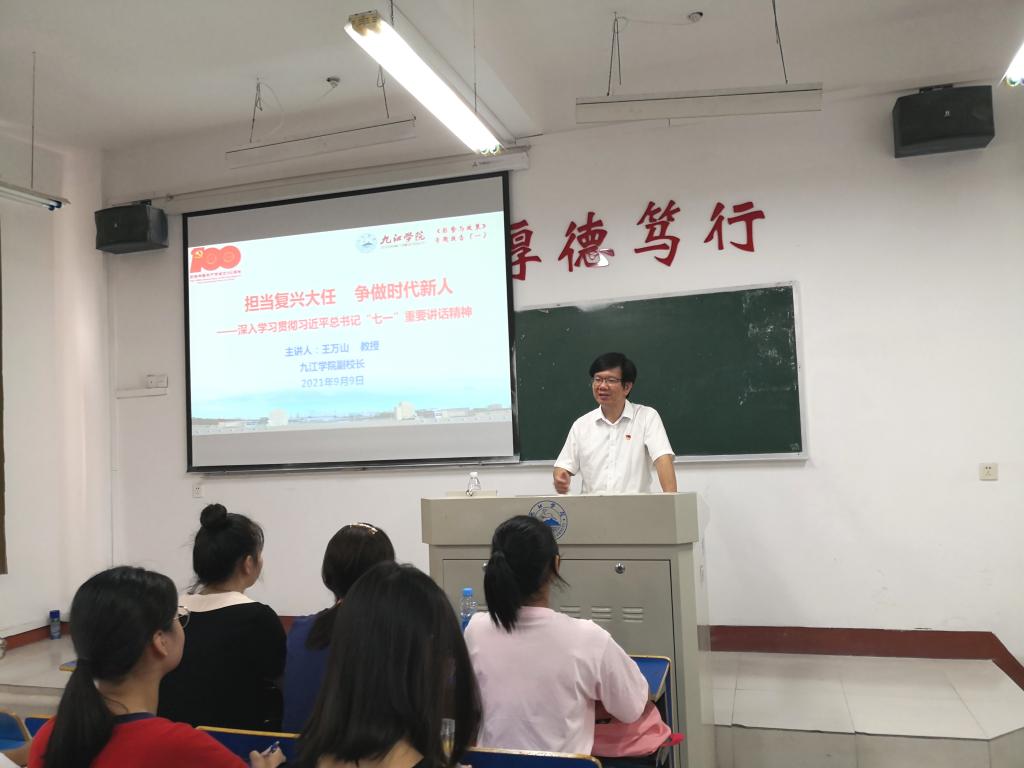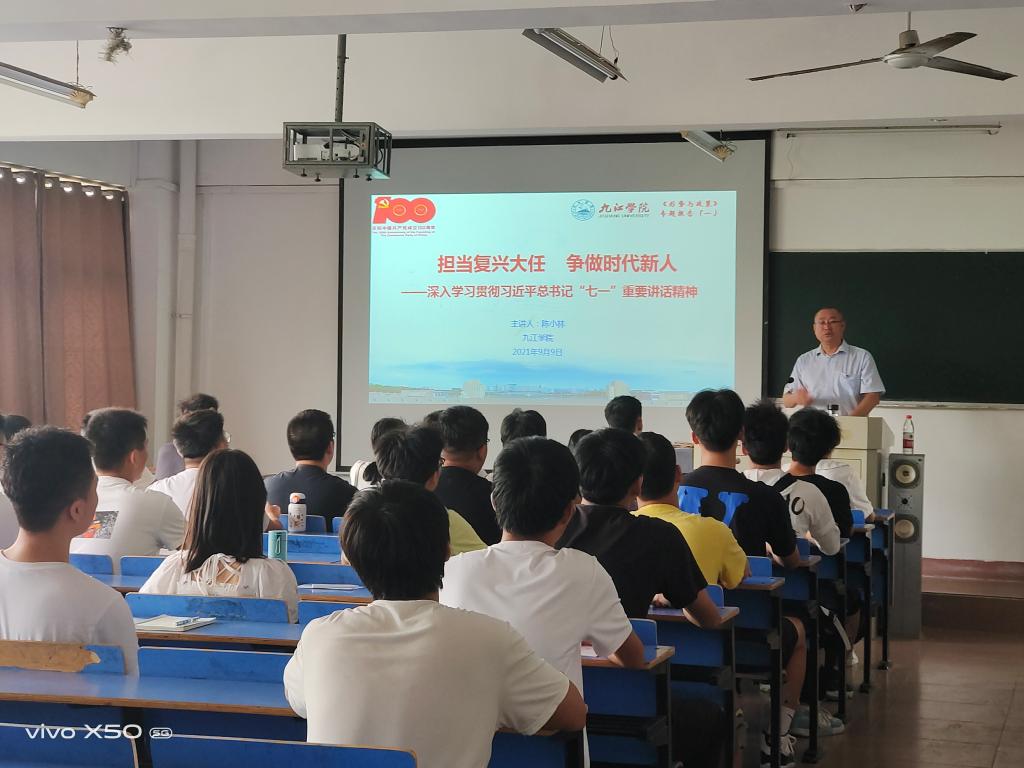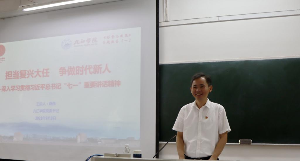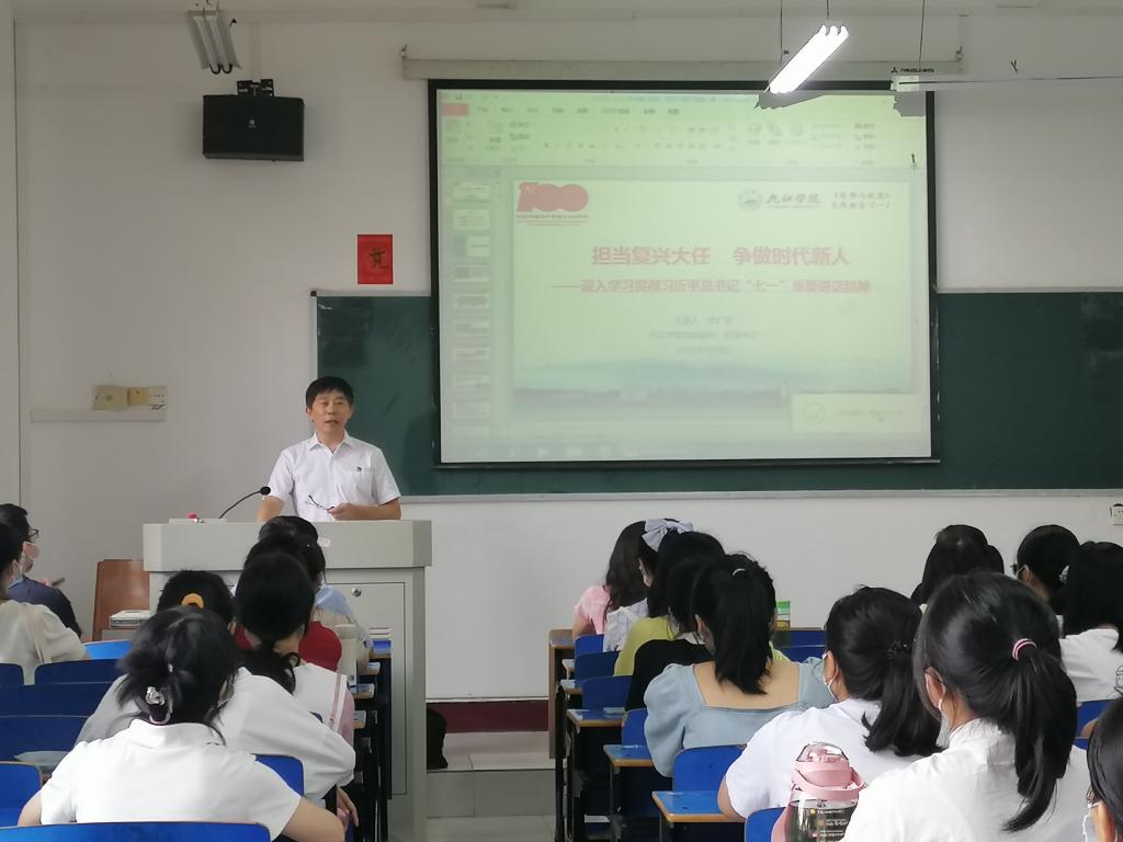 赵伟在授课时指出,习近平总书记在庆祝中国共产党成立100周年大会上发表了重要讲话,总书记的铿锵话语、殷殷嘱托,彰显了党的伟大、自信、力量和蓬勃生机,凝聚起亿万人民同心向党、携手奋进的磅礴力量。同学们要深刻认识习近平总书记“七一”重要讲话的历史性、划时代、里程碑意义;要深刻认识我们党创造的伟大成就,特别是党的十八大以来创造的新时代中国特色社会主义的伟大成就;要深刻认识中国共产党的领导是革命、建设、改革、复兴事业的根本保证,更加自觉地增强“四个意识”、坚定“四个自信”、做到“两个维护”;要深刻认识伟大建党精神是我们党的精神之源,大力弘扬光荣传统、传承红色基因、赓续红色血脉;要坚持知行合一,增强学习实效。要把“七一”重要讲话精神贯彻落大学生全面发展的各环节,使我们的大学生明理更清醒、增信更执着、崇德更坚定、力行更自觉,奋进新征程、建功新时代。