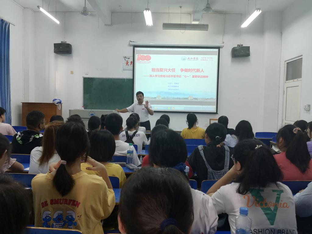 当日,副校长王万山、陈春生、杨耀防、夏启国、查振华,纪委书记李广欣,党委委员王殿元、冯健、刘遵海分别为经济、文传、医学、土建、材料与工程、外国语、政法、教育、电子商务、资环等学院新生班同学讲授了让人记忆深刻的思政第一课。大家围绕深入学习宣传贯彻习近平总书记“七一”重要讲话精神,引导大学生坚定不移听党话、跟党走,培育爱党爱国爱人民的情怀,把个人理想融入时代主题、汇入复兴伟业,勇做担当民族复兴大任的时代新人,勉励他们努力奋斗,成为中国特色社会主义事业的合格建设者和可靠接班人,成为走在时代前列的奋进者、开拓者、奉献者。