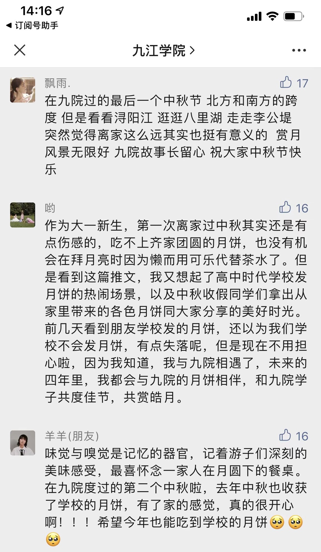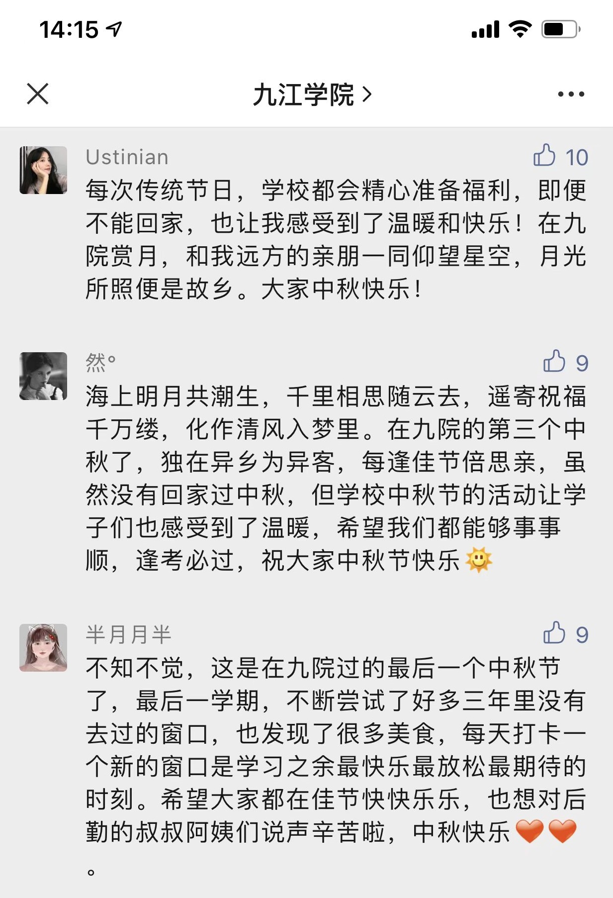 “每次传统节日,学校都会精心准备福利,即便不能回家,也让我感受到了温暖和快乐!”“作为一名大一新生,第一次离家过中秋,看到朋友学校发的月饼还以为我们学校不会发月饼,有点失落,但现在不用担心了,因为我知道,我与九院相遇了,未来四年里,我都会与九院月饼相伴,和九院学子共度佳节,共赏皓月” ……在九江学院微信公众号和九院后勤公众号里一条条温馨留言,感动着每一个九院人,这些留言都源于这几日永利yl23411集团官网后勤管理处饮食服务中心开展的一场“佳节不忘光盘礼,浓情更惜月饼情”活动。这是学校后勤管理处又一次在我国传统节日为师生发放福利,也再次表明九院后勤干部员工们正用实际行动聚焦立德树人根本任务,用心用情为九院师生办好实事。