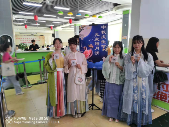 9月18日的教工食堂和9月21日的学生食堂,人头攒动,格外热闹,不少师生很快吃光了盘中餐,在餐具回收点,他们手拿“光盘”换得一块月饼,月饼是九江学院专属的“校徽”月饼。每一块都印着九院校徽,有蛋黄莲蓉、五仁、豆沙等口味,温情满满。师生们换得“校徽”月饼后,惊喜不已,迫不及待地拍照、发朋友圈。他们说,月饼很精美,很有纪念价值,都舍不得吃了。