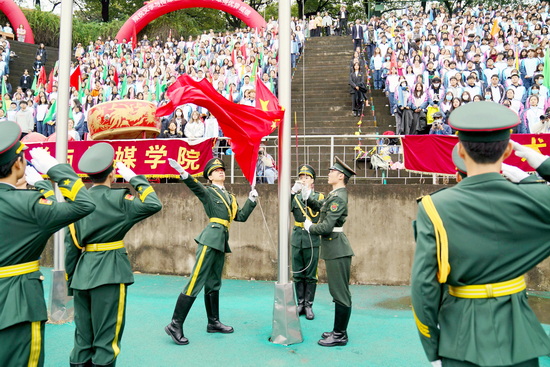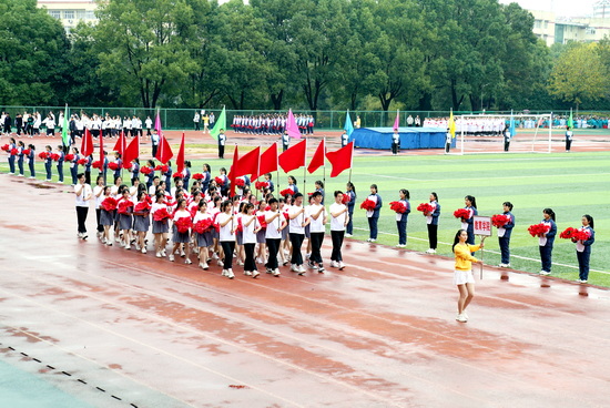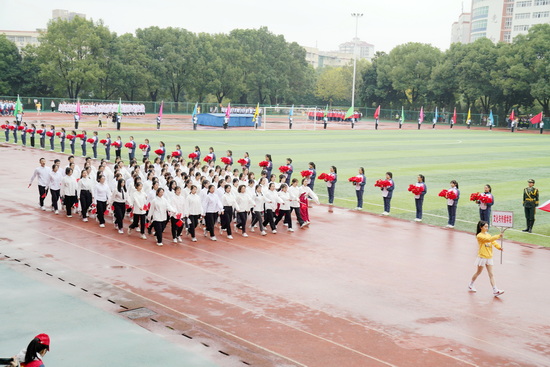 上午8时整,伴随着昂扬振奋运动员进行曲,永利yl23411集团官网第二十届运动会进场仪式正式开始。国旗、校旗、运动会会旗和会徽在仪仗队护卫下率先入场,他们精神饱满、气宇昂扬,迈着标准的正步依次通过主席台,充分展现了永利yl23411集团官网莘莘学子积极向上的精神风貌。