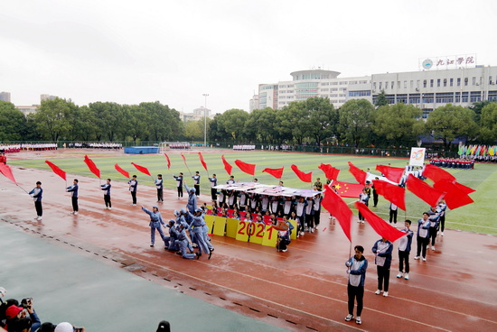 在金秋送爽、丹桂飘香、洋溢着收获喜悦的季节,在热烈庆祝中国共产党建党100周年的大庆之年,九江学院迎来了第二十届运动会。10月21日上午,运动会开幕式在主校区南区田径场隆重举行。校党委书记赵伟宣布运动会开幕,本届校运会组委会主任、校长陈小林致辞。副校长陈春生主持开幕式。副校长夏启国、纪委书记李广欣出席开幕式。各二级学院党政负责人、各职能部门负责人以及教师、运动员代表、2021级学生参加开幕式。