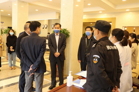 在主校区南门,校领导查看了校门值守情况,要求保卫处等相关部门进一步抓紧抓实公共场所常态化防控措施,值守工作人员要严格落实好公共场所“四查一戴”(即查验健康码、查体温、查看行程轨迹、查新冠疫苗接种记录和戴口罩)工作要求,无关人员一律不得进入校园,确保校园安全。