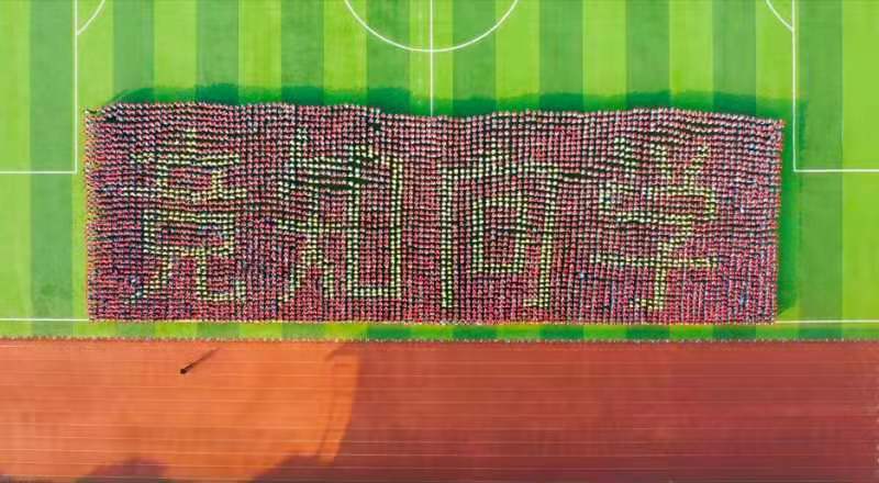 根据疫情防控要求,这次大会简化了相应流程。2021级新生们在会场上展示了团体图案表演和手舞表演。