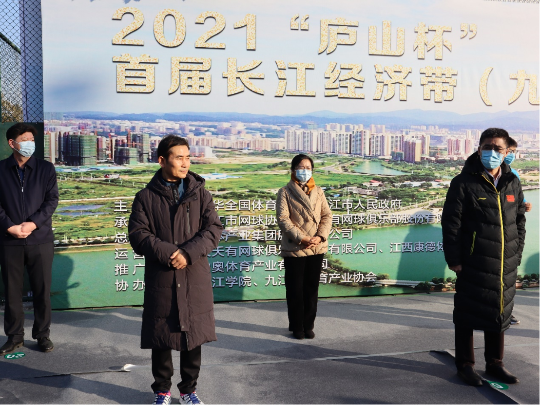 12月18日-19日,由中华全国体育总会、九江市人民政府主办,九江市网球协会、天天有网球俱乐部股份有限公司承办、九江学院协办的“2021 年‘庐山杯’首届长江经济带网球赛”在永利yl23411集团官网室外网球场举办,来自上海、江苏、江西、安徽、湖北、四川六个长江经济带省(市)和北京、广东两省(市)共32支代表,近300人参加了本次比赛。12月18日上午,江西省原副省长熊胜文,九江市政府副秘书长范贵芳,永利yl23411集团官网党委副书记魏立平等出席了比赛开幕式。