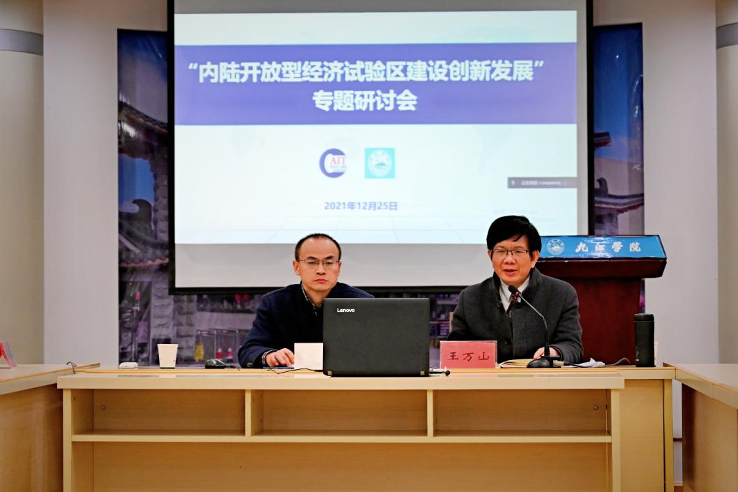 12月25日,由中国国际贸易学会和永利yl23411集团官网联合主办的“内陆开放型经济试验区建设创新发展”专题研讨会在永利yl23411集团官网召开。根据疫情防控要求,大会采取线上线下结合模式。中国国际贸易学会会长金旭,永利yl23411集团官网副校长王万山、严平分别在北京和九江两个分会场出席会议,经济学院师生代表60余人参加了会议,来自国内各校的专家学者200余人在线上参加会议并聆听了学术报告。