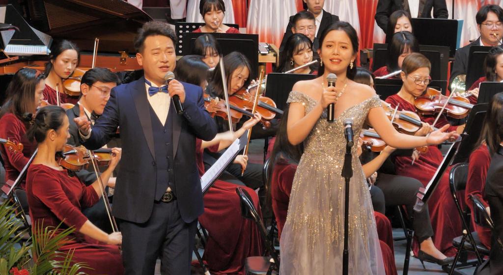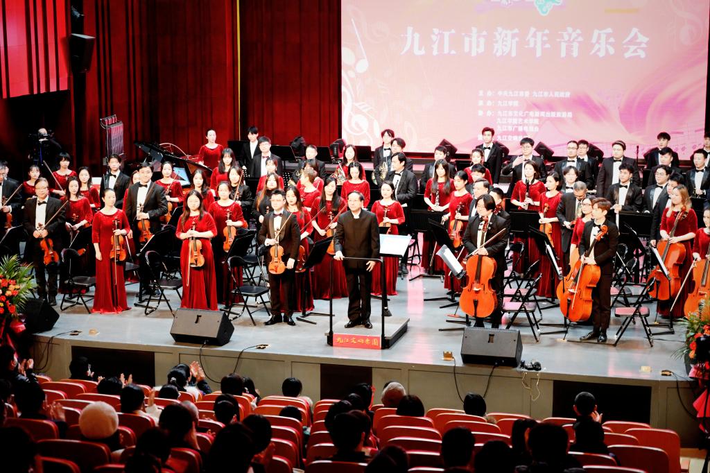 音乐会在旋律明快,节奏鲜明的管弦乐《春节序曲》中拉开帷幕,欢快的旋律把观众带入到新年的热闹场面中。《三月桃花心中开》《党啊,亲爱的妈妈》《辉煌中国》优美动听,饱含深情,唱出了人民的心声;《九江组曲》运用交响音乐特有的力度、广度、锐度与温度,体现出“再创九江辉煌,再现九派荣光”的奋斗精神;《不忘初心》道尽对祖国和人民的浓浓深情......整场音乐会分为上下两个半场,独唱、双人合唱、管弦乐、大合唱等15首精彩乐曲轮番上演,让观众沉浸在悠扬的乐声中,也赢得了阵阵掌声。最后,音乐会在轻快的《康康舞曲》中落下帷幕。