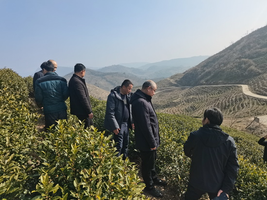 在石林·桃源景区和英山茶博园,陈小林在鲁溪镇党委书记肖龙雨的介绍下,详细了解了双新村乡村旅游点的建设和白茶产业的发展情况。