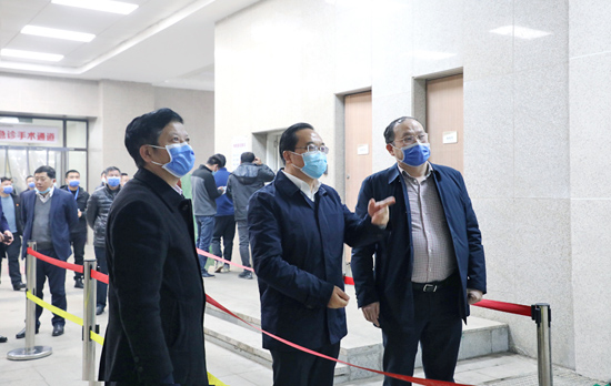 杜少华一行实地查看了医院预检分诊、核酸检测点、发热门诊等重点防控区域,每到一处都与工作人员亲切交谈,详细询问工作情况和遇到的困难,了解预检分诊流程、发热病人处置流程、陪护探视制度落实等情况。座谈会上,杜少华认真听取了医院负责人关于医院基本情况、疫情防控工作和下一步发展规划的工作汇报。他对附属医院疫情防控措施工作落实情况给予了充分肯定,并强调,要提高思想认识紧抓疫情防控常态化工作,时刻绷紧疫情防控安全弦,把各项措施抓实抓细抓到位;要优化流程、完善预案,严格做好闭环管理,坚决防止“院感事件”发生;要进行全员再教育、再培训,确保人人知晓、人人掌握;要配足配齐配强防控人员,明确岗位职责;切实发挥好“哨点”作用,持续巩固疫情防控成效,切实保障人民生命健康安全。