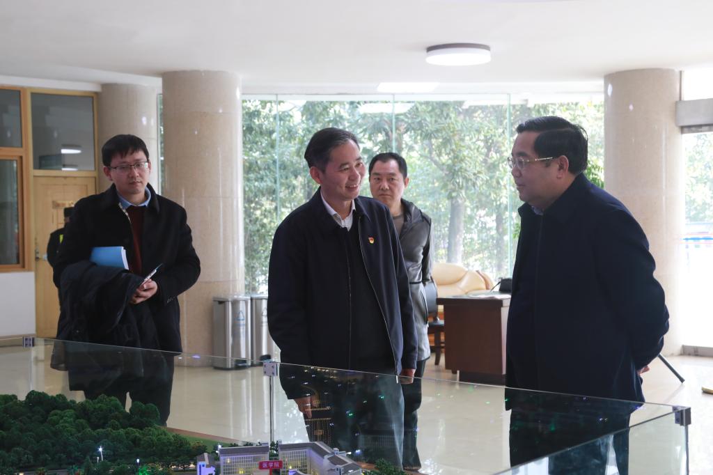 会前,省委党史学习教育第一巡回指导组参观新校区沙盘