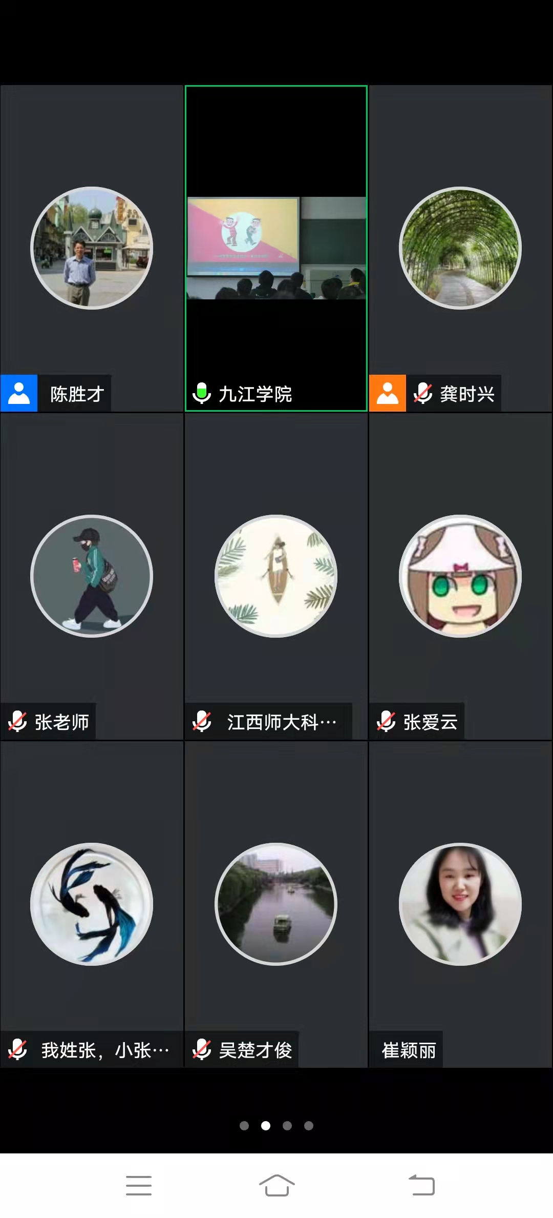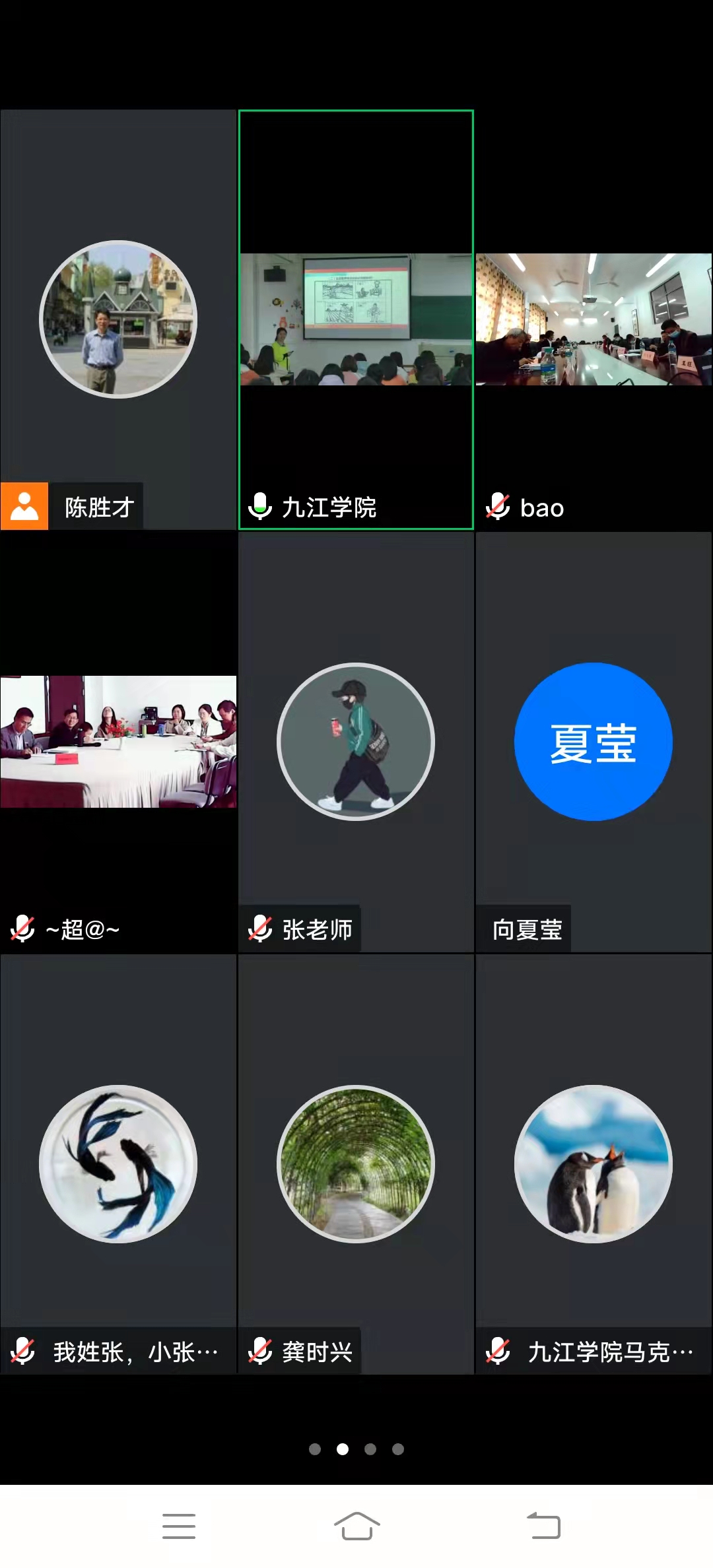 赣南师范大学、景德镇陶瓷大学、赣南医学院、景德镇学院、南昌大学科学技术学院、江西师范大学科学技术学院、江西农业大学南昌商学院、江西财经大学现代经济管理学院、南昌航空大学科技学院、九江职业技术学院、江西财经职业学院、九江职业大学等高校分别参加了江西省和九江片区高校《马克思主义基本原理》课程“问题式专题化团队教学展示活动”。来自省内的11所高校的50余名思政课骨干教师以视频会议形式参会研讨。