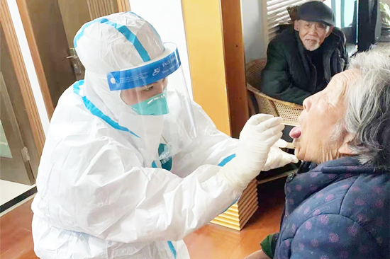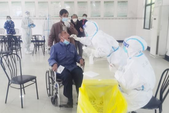 4日清晨5点,队员们还未休息到一个小时,接到了核酸采集工作要求出发指令。大家立刻整装,以饱满的热情投入到上海市大规模核酸采样的大部队当中。到达采集地点时,队员们受到了上海社区工作人员的热烈欢迎,社区、村镇工作井然有序,已按区按户按时段做好了受检人员的安排,工作效率得到了极大的提升。看着巨大的人员数字待采集,九江学院附属医院队伍不愿意因任何自己的问题轻易停歇,他们普遍都超过8小时没有吃上午饭,最晚的一直工作到晚上七点半才吃饭。口罩和护目镜在队员们脸上勒出了深深的痕迹,但他们只想着深入社区争分夺秒为居民采样,一天下来,队伍共完成1万1千多人次的核酸采样任务。