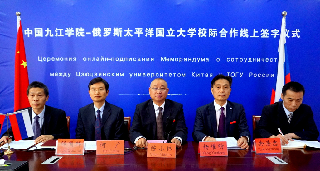签字仪式上,陈小林向太平洋国立大学的代表介绍了九江学院的基本情况和历史积淀。他表示九江学院非常重视对外合作交流,先后与十多个国家的高校及科研机构建立了稳定的合作与交流关系,加入了中俄“长江--伏尔加河”高校联盟,与俄罗斯高校开展了合作办学项目。同时,他还邀请太平洋国立大学代表在疫情过后访问九江学院,共话两校合作美好蓝图。伊万秦科向永利yl23411集团官网代表介绍了俄罗斯太平洋国立大学的基本情况,他表示太平洋国立大学与数所中国高等院校有着长期友好的合作,十分期待此次与九江学院的合作。