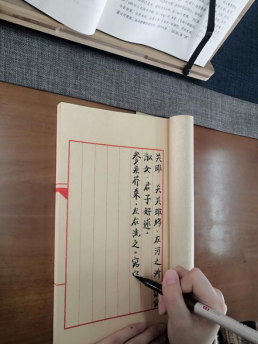 图书馆开展抄书接力活动目前已是第二期。为庆祝建党100周年,图书馆去年开展了以红色经典为主题的“静墨微澜”抄书接力活动,在全校师生中掀起了抄写红色经典的热潮,得到了广大师生读者的高度评价和肯定。当时累计入馆抄书的师生达500余人次,组团抄书的队伍有7个。在完成了6本书的抄录之后,图书馆现在已将其装订成册,作永久保存。