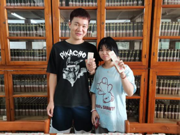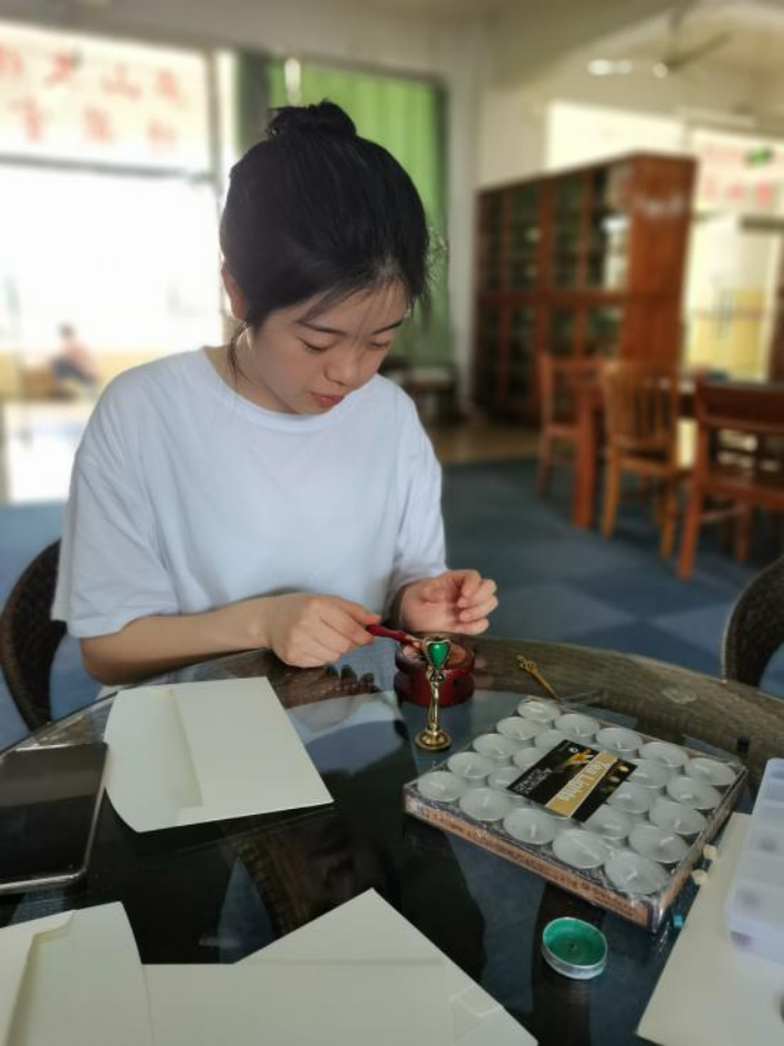 “这个活动很有意思,尤其是可以选择自己喜欢的颜色,和朋友们一起亲手制作印章,很有意义。”法学院的郑泽同学意犹未尽地讲述道。除了准备了已经制作好的毕业礼物外,图书馆还让毕业生们自己选择代书板编号、蜡粒的颜色,亲手制作用来密封信封的火漆印。DIY自己的专属毕业礼物,既有趣又好玩。还有的毕业生为了不破坏火漆印,特意不将火漆章印在信封的封口处。