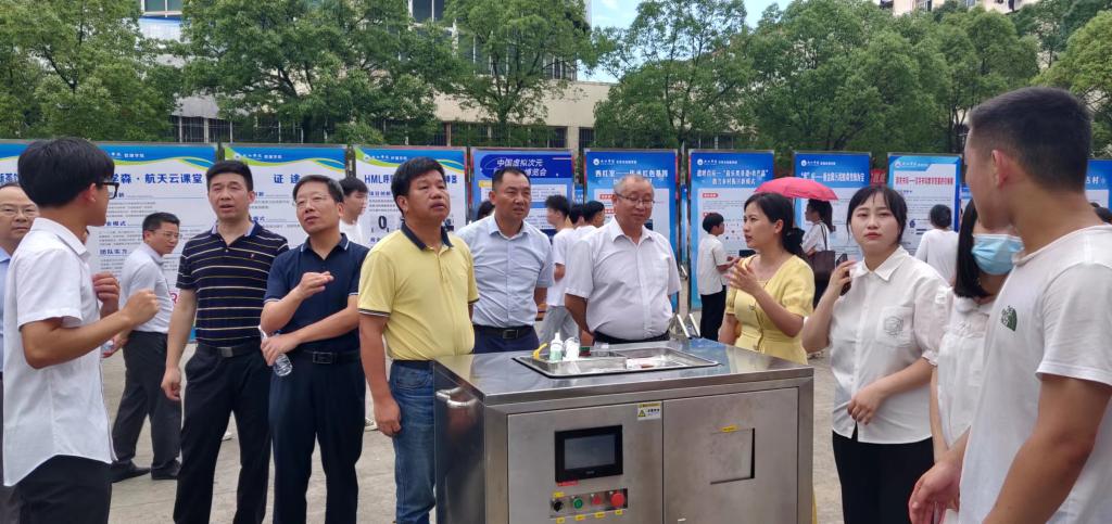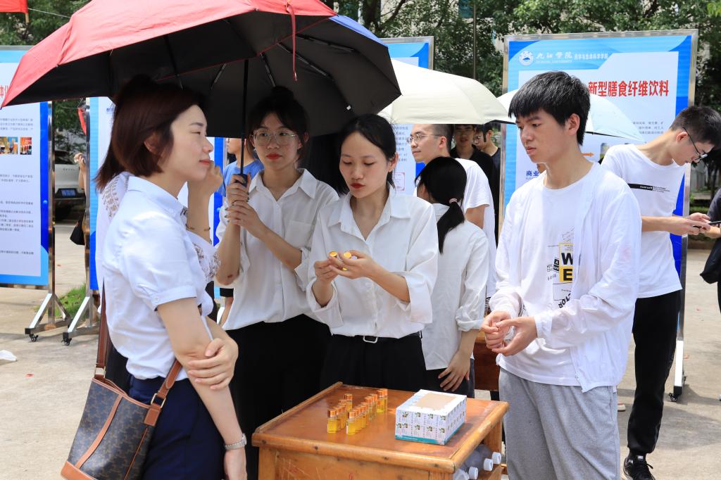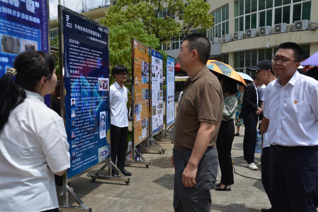 为贯彻落实中共中央、国务院有关劳动教育和促进大学生创新创业的有关精神,进一步提升大学生创新创业能力,激发学生创新创业热情,6月21日,永利yl23411集团官网在学校三食堂广场举行了2022年学生创新创业实践成果展暨项目推介会,67块展板、17个学院的学生创新创业成果在推介会上亮相,吸引了众多师生围观。校长陈小林,副校长陈春生、严平出席成果展并与师生现场研讨创新创业实践成果。来自北京、广州、南昌和九江的知名投融资公司、银行负责人和专家周洛宏、庄岩、江传明、甘文斌等15人应邀观展并进行了项目对接。