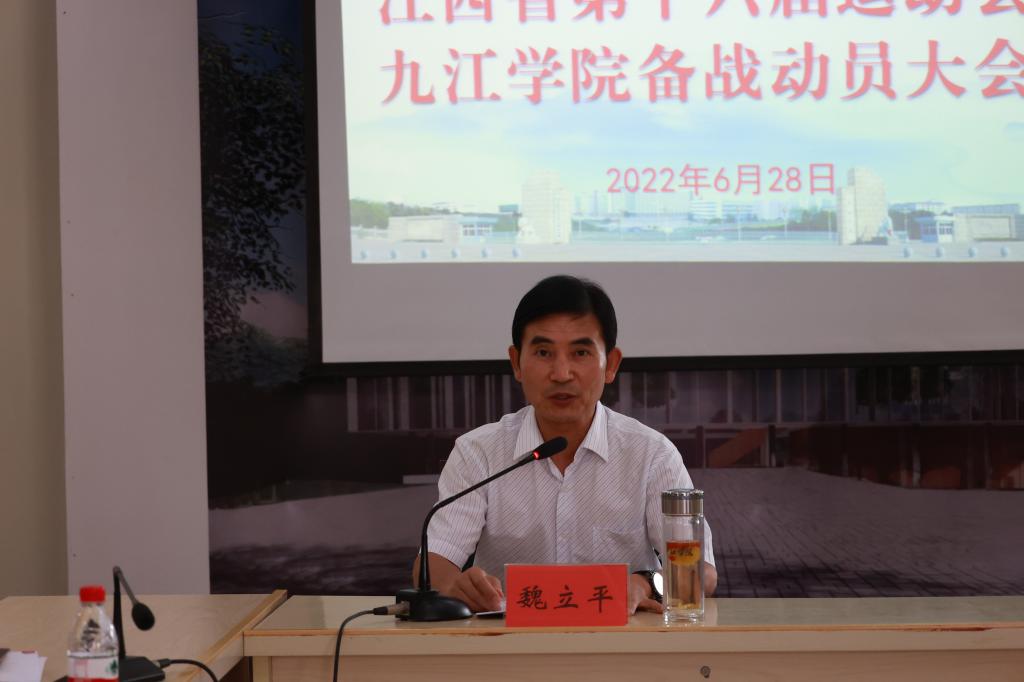 为迎接江西省第十六届运动会的顺利举行,动员九院运动健儿迅速进入临战状态,以饱满的激情、科学的态度、扎实的作风,备战省运会,力争新突破,全面展示新时代九江学院师生的风采,6月28日,永利yl23411集团官网举行第十六届省运会备战动员大会。校党委副书记魏立平出席会议并作动员讲话。副校长陈春生主持会议。