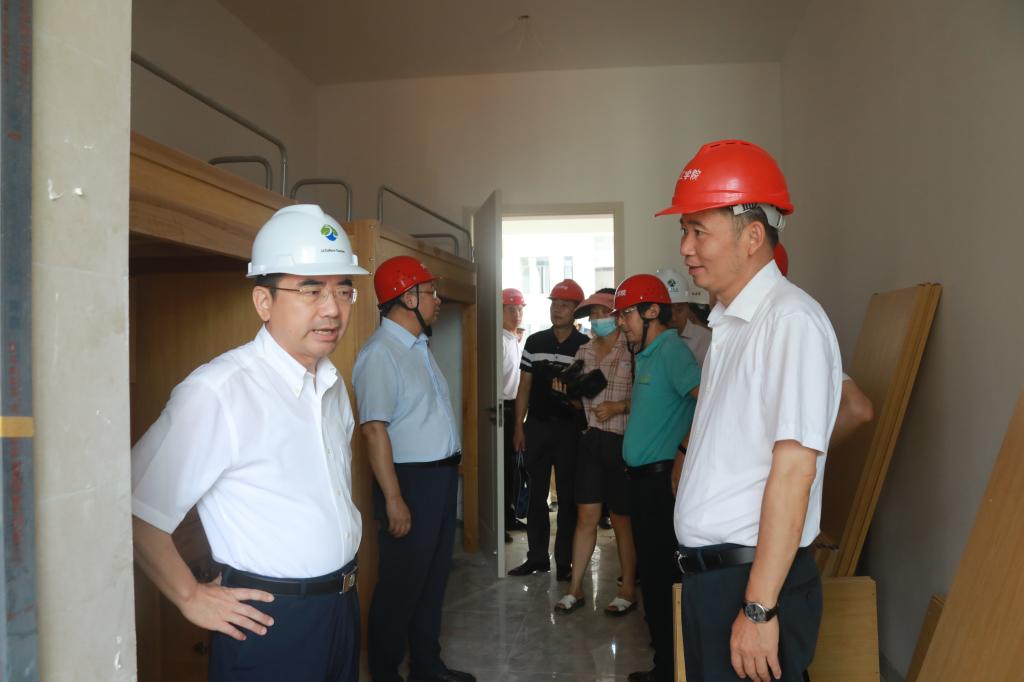 调研会之前,蒋文定实地察看了省运会运动员村的宿舍、食堂、办公区和综合体育馆的建设准备情况。