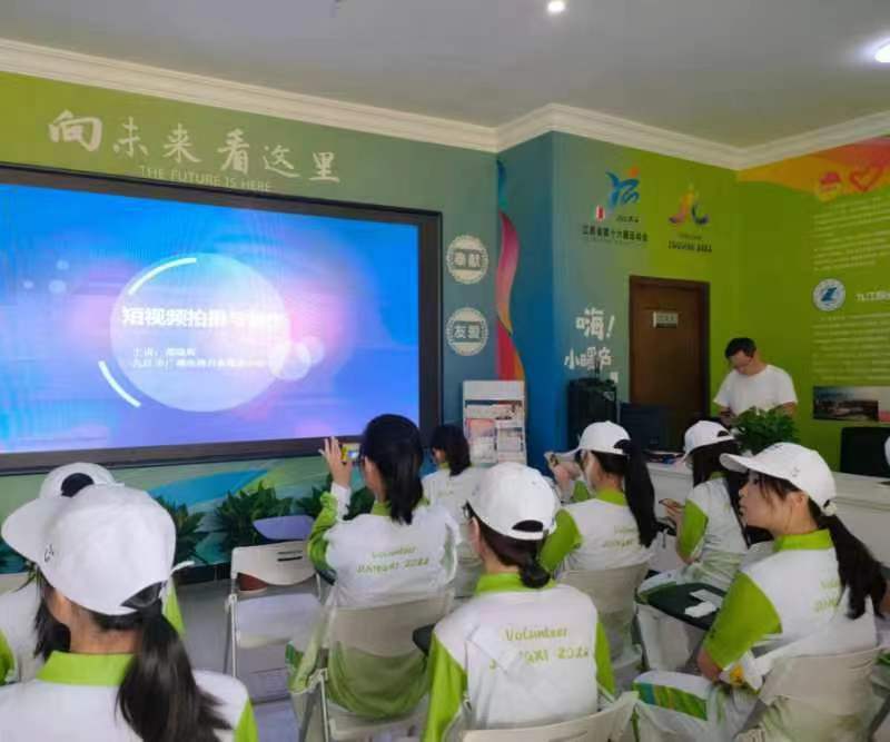 8月10日上午,志愿者们参加了省运会执委会召开的宣传助理岗位培训会,认真学习新闻采访知识和技能。在后期的志愿服务中,他们将认真配合省市各宣传平台工作,严标准、高要求呈现优质作品,扩大宣传影响力,体现九江学院大学生志愿者健康积极的精神面貌。