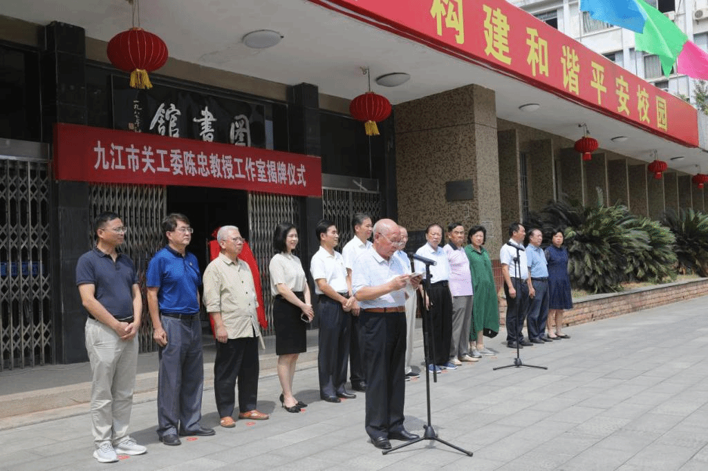 在中秋节、教师节双节来临之际,9月9日上午,九江市关工委“陈忠教授工作室”揭牌仪式在永利yl23411集团官网浔东校区图书馆前广场举行,九江市关工委主任史之汉和永利yl23411集团官网党委书记赵伟共同为“陈忠教授工作室”揭牌。