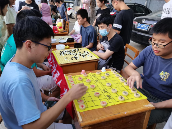 在三食堂广场上,竞技社团的成员们提前准备好棋盘棋子,等待同学们前来切磋技艺。围棋组的选手们手持黑白棋子,凝神静气,沉着对弈,看似云淡风轻,实际上步步为营;象棋组的选手们布阵点兵,着棋下子间运筹帷幄,针锋相对,博弈于楚河汉界;热烈精彩的现场吸引了许多同学的驻足,协会成员们纷纷上前为他们科普国粹的悠久历史,讲解竞赛规则,解说精彩棋局。棋艺活动让爱好棋类的同学们有展示的舞台,让广大同学得到精神熏陶,以棋养德,以棋益智。