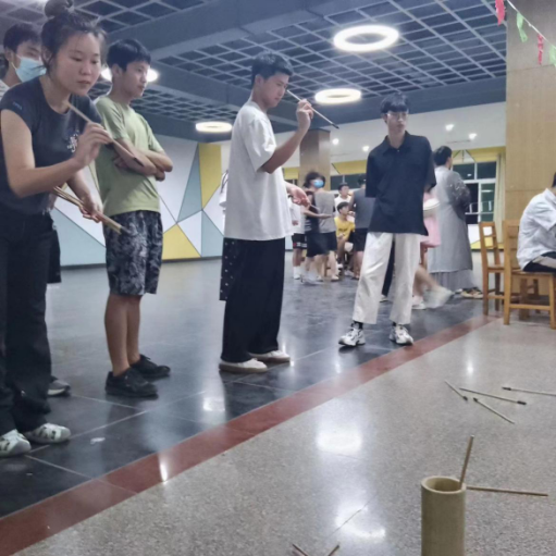 三食堂广场上,猜灯谜,投壶,飞花令等传统小游戏让同学们踏着回忆追寻传统;艺术社团更利用自身优势,边画边猜,将新颖创意融入游戏,鼓励同学们发挥特长,创造更多精彩;文学社团的成员们认真演绎着经典文学作品里的角色,让同学们在猜谜中回味经典、身临其境中感受文学的魅力;体育社团为同学们带来了妙趣横生的手工小活动,可爱逼真的月亮兔子,生动形象的花灯,色彩缤纷的挂饰;更有乒乓球趣味小游戏,羽毛球团体赛,丰富的体育活动都吸引着在场的同学们跃跃欲试,热热闹闹的氛围将中秋的节日气氛烘托得更加浓厚。