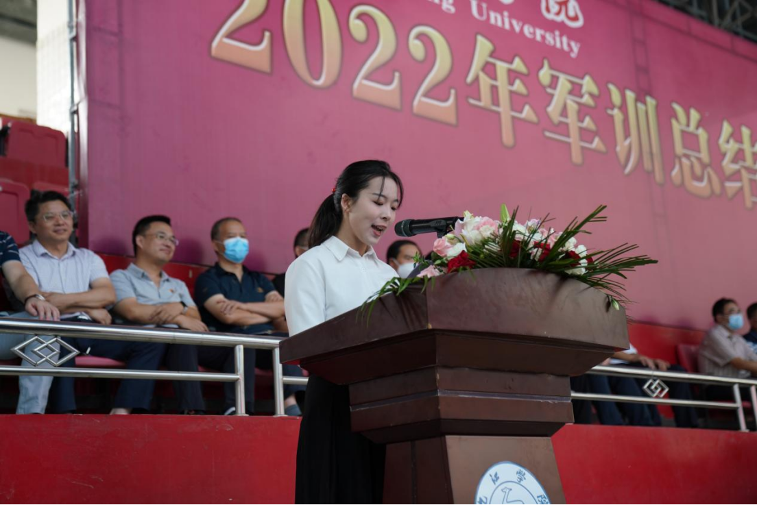 学生处处长、军训旅政委吴铃宣布军训内务评比结果